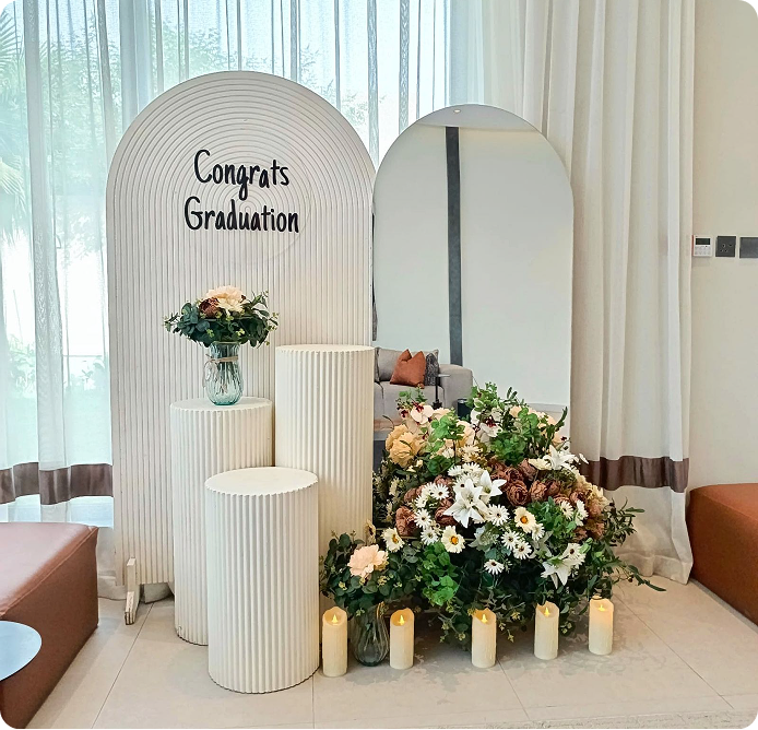 كل اللي تحتاجينه لتنظيم حفلتك نوفره لك باحتراف – جلسات، تنسيق، ضيافة، تجهيزات تقنية، وترفيه... في مكان واحد وبخدمة تليق بذوقك.